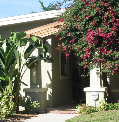 The Client’s request was to provide a newly re-designed entry and front landscape package to re-emphasis the idea of “front door”. The request was that the landscape be tropical by nature and that it be integrated into the entry. Colorful Bougainvillea, Variegated Ginger, and Adonida Palms were amongst the pallet. The entry incorporated simple beams and columns with a framed lattice and trellis configuration.