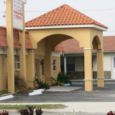 colored stucco, barrel tile and arches. Parking was re-configured