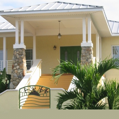 Located on a large lot in St. Petersburg, Florida, This 3237 sq ft, Key West style home overlooks Riviera Bay. The client’s wanted to focus the design at the front with its large spaded, cobblestone and heavy timber columns which flank a formal stair entry. Large elevated, and spacious porches of the house are reminisant of Key West style living. Emphasis is placed on landscape and up-lighting to equally place its sub-tropical character at night or at day. The oversized garage was equipped with a automatic car lift to feed the Client’s passion for working on vintage Corvettes.